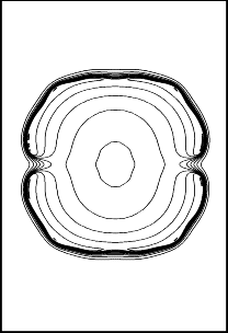 Iso-thermals T = 0.1, 0.2,..., 1.0 at times t = 10 and 30.